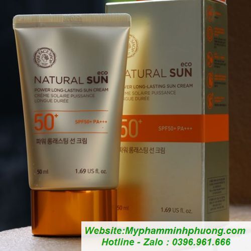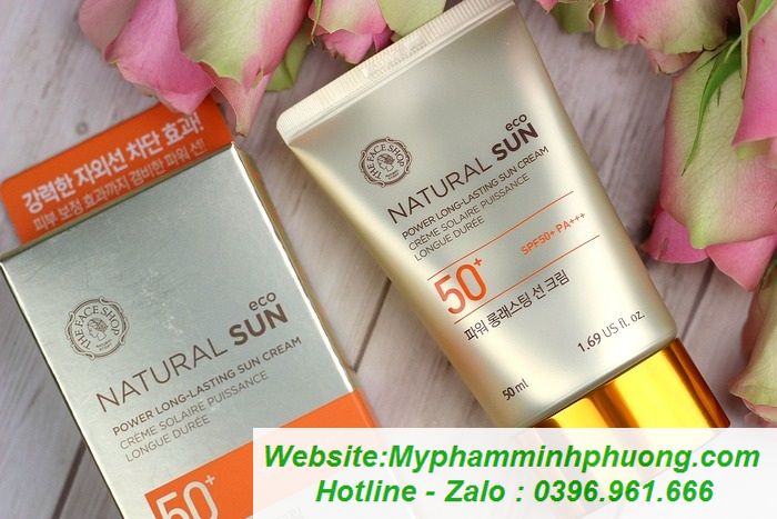 Kem chống nắng với chiết xuất từ hoa hướng dương. Được chứng nhận bởi ECO-CERT – một tổ chức uy tín toàn cầu, được thành lập vào năm 1991 tại Pháp. Natural sun ECO power long-lasting sun cream SPF50+ PA+++ là kem chống nắng đa năng được yêu thích nhất tại The Face Shop. Sản phẩm vừa chống nắng bảo vệ da tối đa nhờ chỉ số SPF50+, vừa có thể sử dụng làm kem lót trang điểm hoàn hảo.