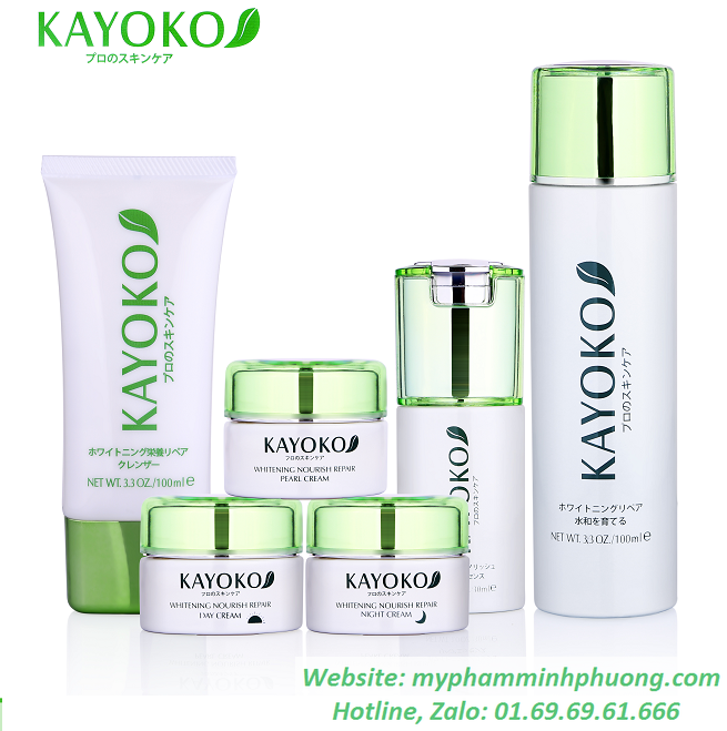 * Thành phần: Kayoko Pearl Cream trong bộ 6 Kayoko Nhật Bản được chiết xuất từ bột ngọc trai tự nhiên, lanolin, arnica, Hamamelis, lô hội, bạch quả, yến mạch, VitaminE, propylene glycol, titalium dioxde, Cety alcohol myristate.