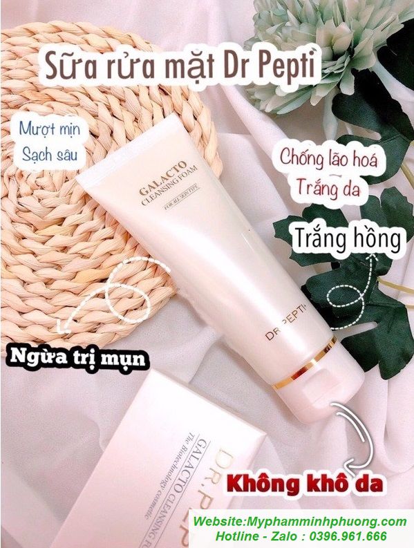 - Sữa rửa mặt Dr Pepti Galacto Cleansing Foam cung cấp độ ẩm cho da, cuốn trôi bụi bẩn, bã nhờn, các tạp chất, khói bụi cho làn da thông thoáng, sạch sâu.